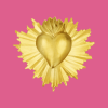 Décoration murale avec un cœur central monochrome en 3D émettant des rayons de lumière dorés avec un dégradé de contours. L'objet est destiné à célébrer toutes les formes d'amour, de lumière et de pensées positives. Ex Voto - Amulettes pour la chance.