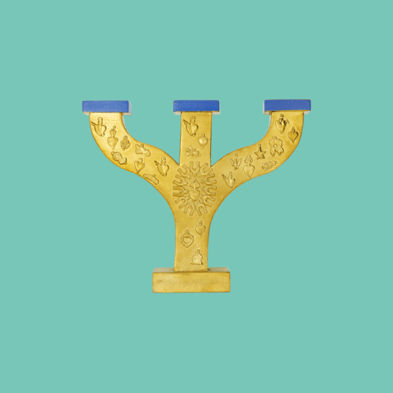 Bougeoir en bois à plusieurs bras, orné de breloques dévotionnelles "Milagros" uniques appliquées sur les deux faces. Chaque pièce est unique. Bougies non incluses, mais vous pouvez facilement trouver la couleur que vous préférez en ligne! Diamètre du trou des bougies: 2 cm