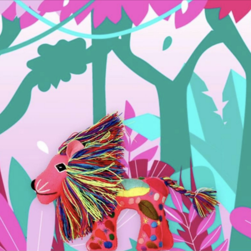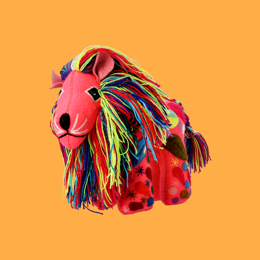 Leone decorativo in lana ricamato a mano. Non è un peluche: è una bellissima decorazione per la vostra casa!