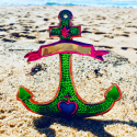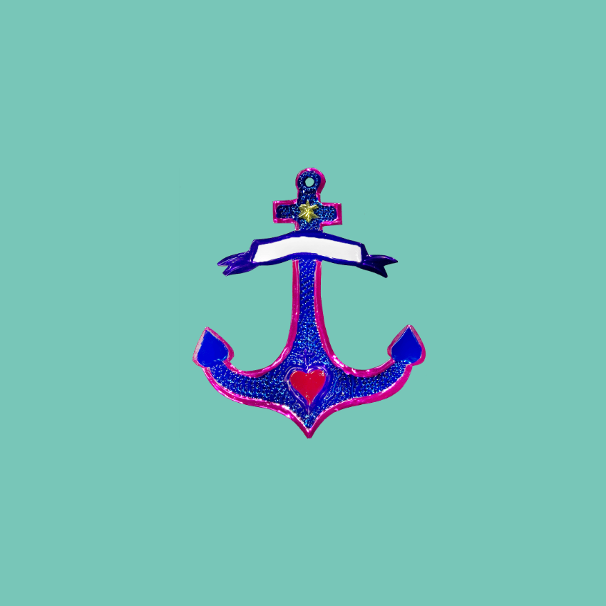 Decorazione da parete a forma di ancora in stile tatuaggio, punzonata in bassorilievo. Ex Voto - Amuleti Portafortuna.