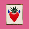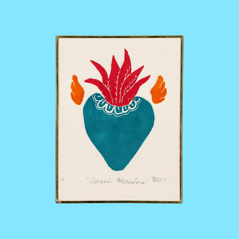 Schizzo decorativo disegnato a mano che rappresenta un cuore alato con immaginarie foglie di agave in fiore. Incorniciato in ottone placcato oro e ricoperto di vetro. L'oggetto vuole celebrare tutte le forme dell'amore, della luce e dei pensieri positivi.