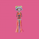 Iconica figura messicana "Catrina", decorazione da parete con gonna in raso in stile hawaiano. Lady Catrina ha un messaggio per tutti noi: vivete una vita piena di emozioni e godetevi il vostro tempo il più possibile!