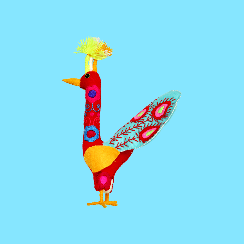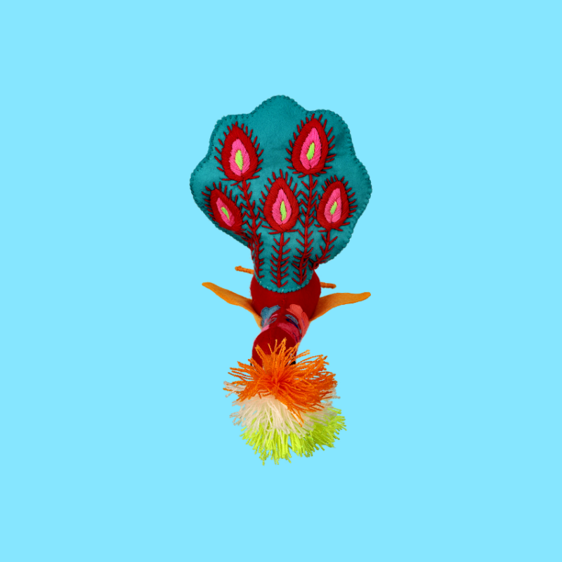 Pavone decorativo in lana ricamato a mano. Non è un peluche: è una bellissima decorazione per la vostra casa!