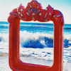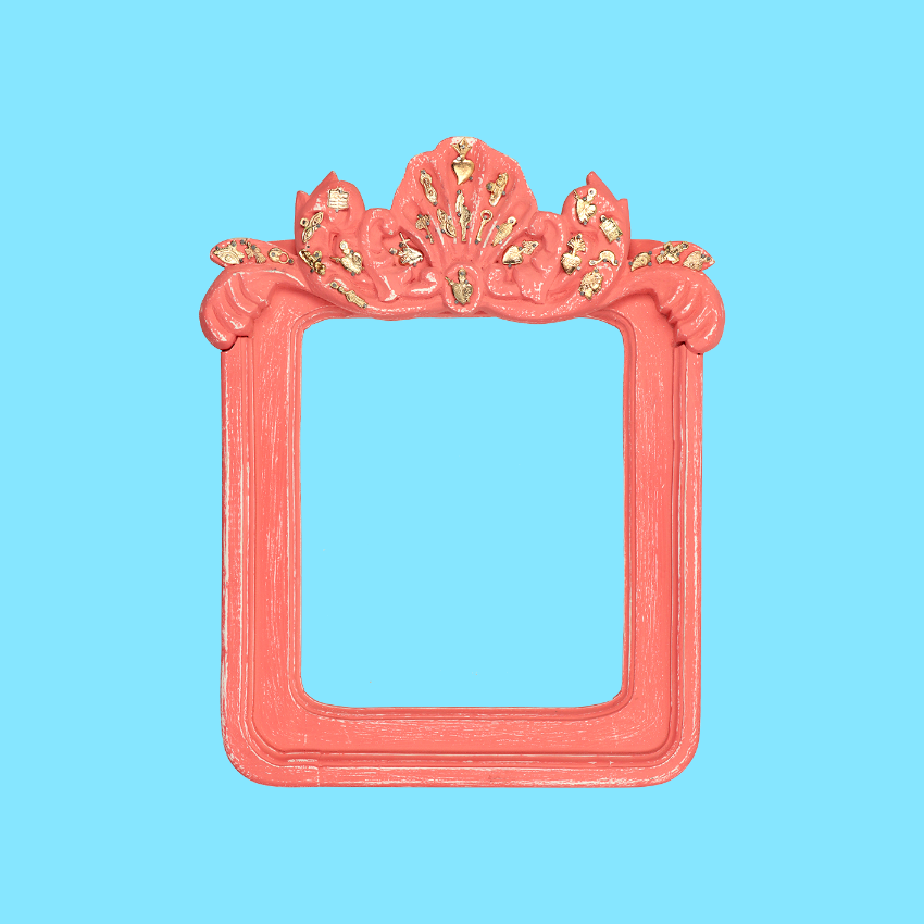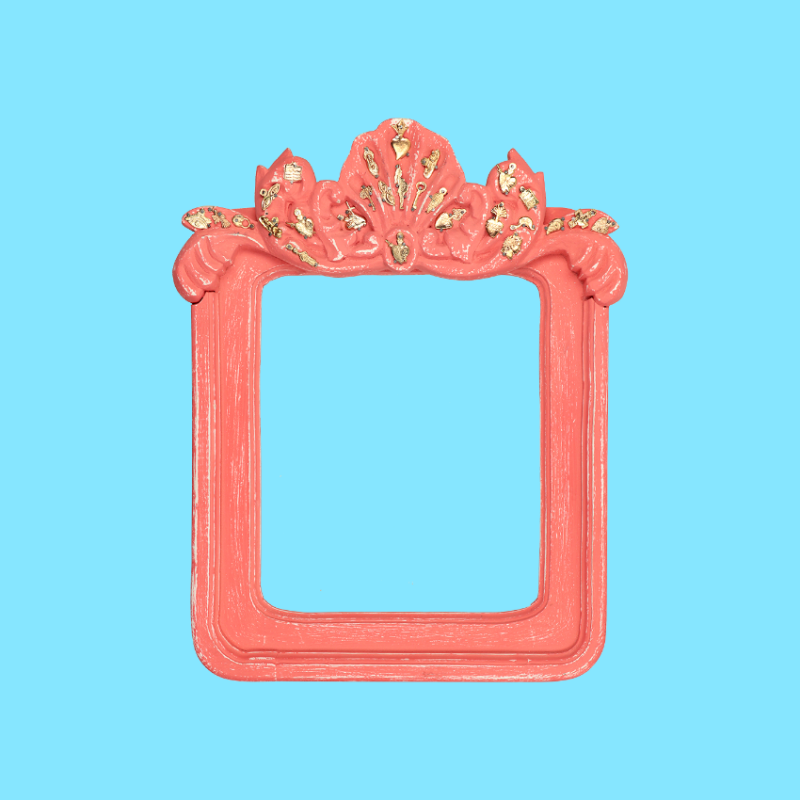 Grande cornice decorativa intagliata a mano con dettaglio centrale a forma di conchiglia, impreziosita da ciondoli devozionali Milagros unici applicati sulla parte superiore. Base rimovibile inclusa. Si tratta di un'opera d'arte polivalente: può essere una pura decorazione da parete, una cornice o uno specchio da parete, su richiesta. Si prega di considerare che è possibile una piccola variazione del colore. Ogni pezzo è unico.