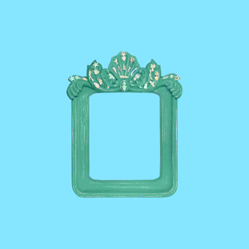 Cornice decorativa intagliata a mano con dettaglio centrale a forma di conchiglia, impreziosita da ciondoli devozionali Milagros unici applicati sulla parte superiore. Base rimovibile inclusa. Si tratta di un'opera d'arte polivalente: può essere una pura decorazione da parete, una cornice o uno specchio da parete, su richiesta. Si prega di considerare che è possibile una piccola variazione del colore. Ogni pezzo è unico.