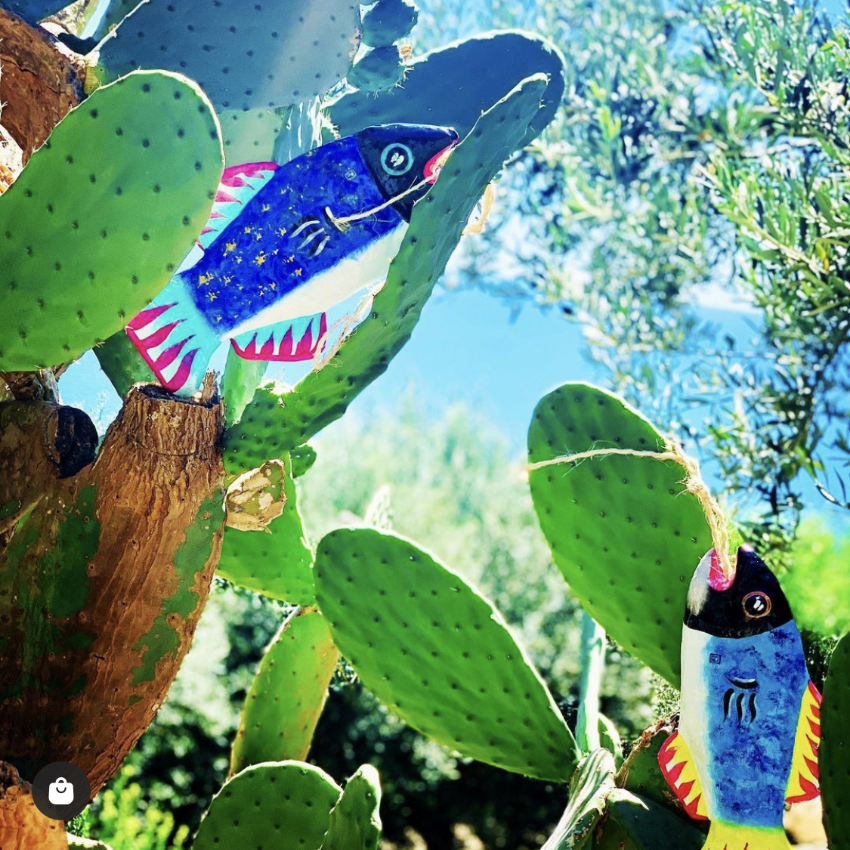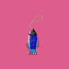 Grande pesce decorativo multicolore dipinto a mano con corda grezza, pronto per essere appeso. Colori super brillanti con finitura lucida.
