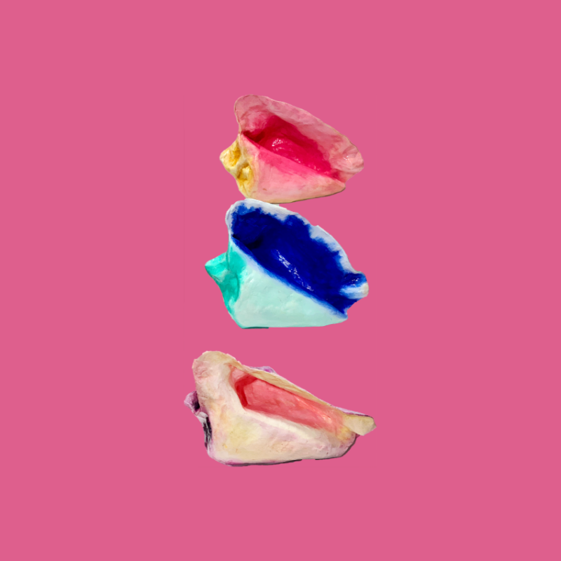 Conchiglia tropicale decorativa in cartapesta dipinta a mano con colori straordinari. L'oggetto perfetto per gli amanti del mare senza rubare niente all'ambiente marino. Ogni pezzo è unico.