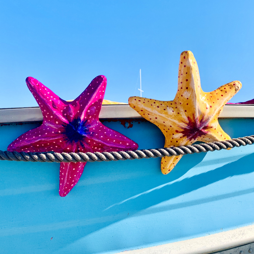 Stella marina decorativa in cartapesta dipinta a mano con colori straordinari. L'oggetto perfetto per chi ama il mare senza rubare all'ambiente marino. Ogni pezzo è unico.