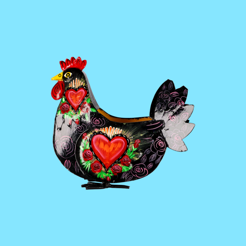 Grande vaso a forma di gallina dipinto a mano. Bello anche come semplice decorazione, darà il meglio di sé con una pianta all'interno. Godetevelo in giardino o in casa. La gallina ha un significato potente: simboleggia protezione e fortuna per ogni progetto che sta "nascendo".