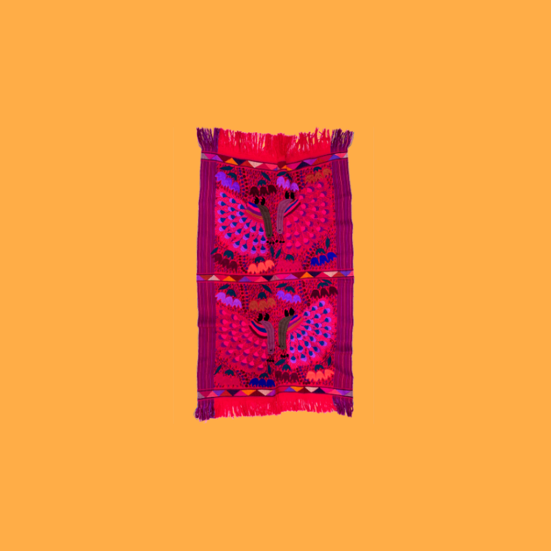 Arazzo multicolore ricamato a mano e completamente decorato con animali tropicali e natura, da una giungla ideale. Gli artigiani di Chiapas usano mescolare estratti di frutta, piante e fiori, ottenendo colori per tingere i filati. Ogni arazzo può essere utilizzato in molti modi diversi: come decorazione murale, tovaglia, copriletto o copridivano, tappeto, coperta... basta trovare l'uso più adatto! Ogni pezzo è realizzato a telaio.