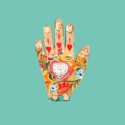 Decorazione da parete a forma di mano con disegno popolare dipinto e ciondoli votivi Milagros applicati unici nel loro genere. Ogni pezzo è diverso dall'altro. La mano è ampiamente considerata simbolo di carità ed empatia: significa "dal cuore". Ex Votos - Amuleti Portafortuna.