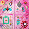 Maxi decorazione murale 3D a forma di cuore con specchio centrale circondato da un doppio strato di cuori di latta luminosi. Un cuore puro genera una moltitudine di cuoricini vibranti e l'amore si moltiplica. Ex Voto - Amuleti Portafortuna.